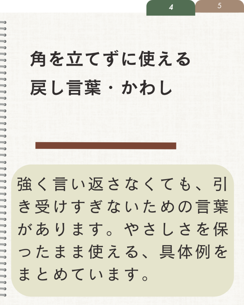 そうして見えてきた選択肢の中から、自分を責める代わりに、距離の取り方や伝え方を整えていく