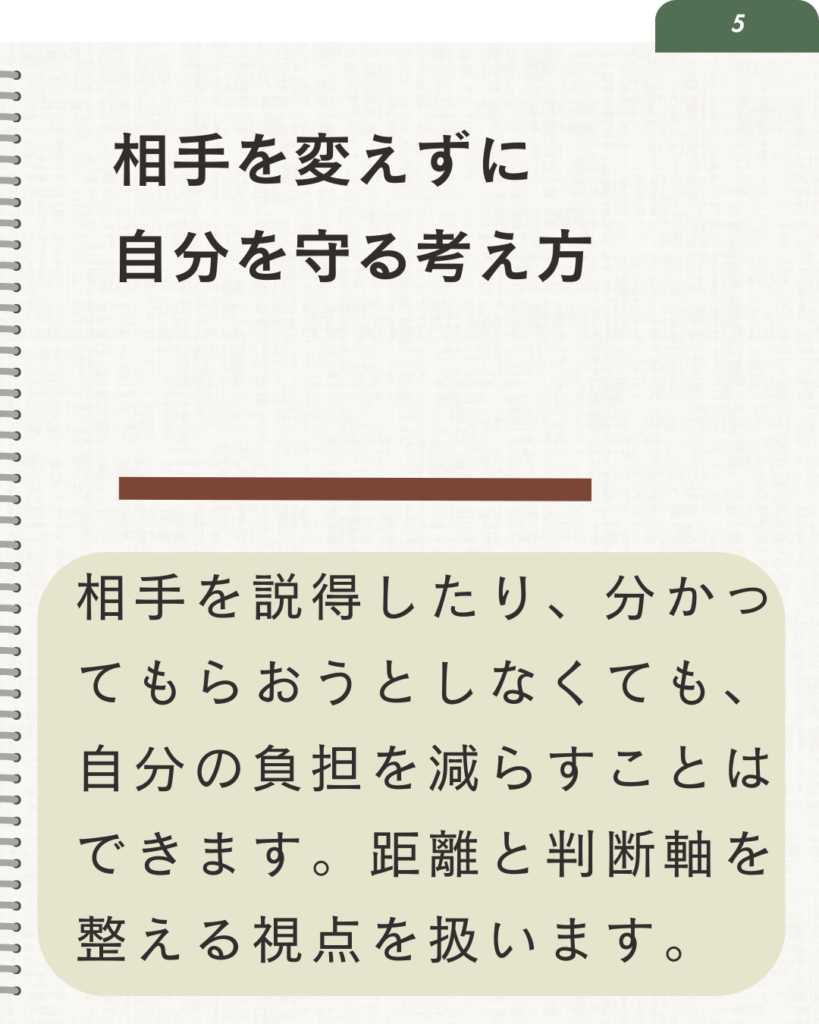 ここで扱っているのは、あなたを変えるための話ではありません。あなたが、あなたを守れるようになる視点を取り戻すための時間です。